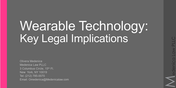 What are wearable technologies? What are the legal implications and risks of using such technologies? Olivera Medenica – Principal, Medenica Law PLLC, of counsel at Bondard Law, gave a conference in New-York about the legal implications of wearable technologies in March 2017.